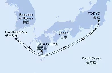 Yokohama kikötőjéből indulva hajózunk Japán partjai mentén és szigetek között az MSC Cruises egyik újabb luxushajójával az MSC Bellissima luxushajóval!